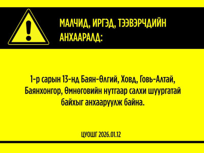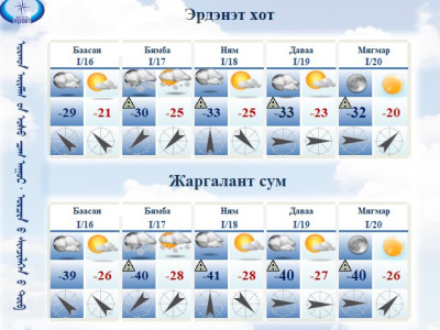 2026 оны 01 сарын 16-аас 01 сарын 21-ийг хүртэлх 5 хоногийн урьдчилсан мэдээ: