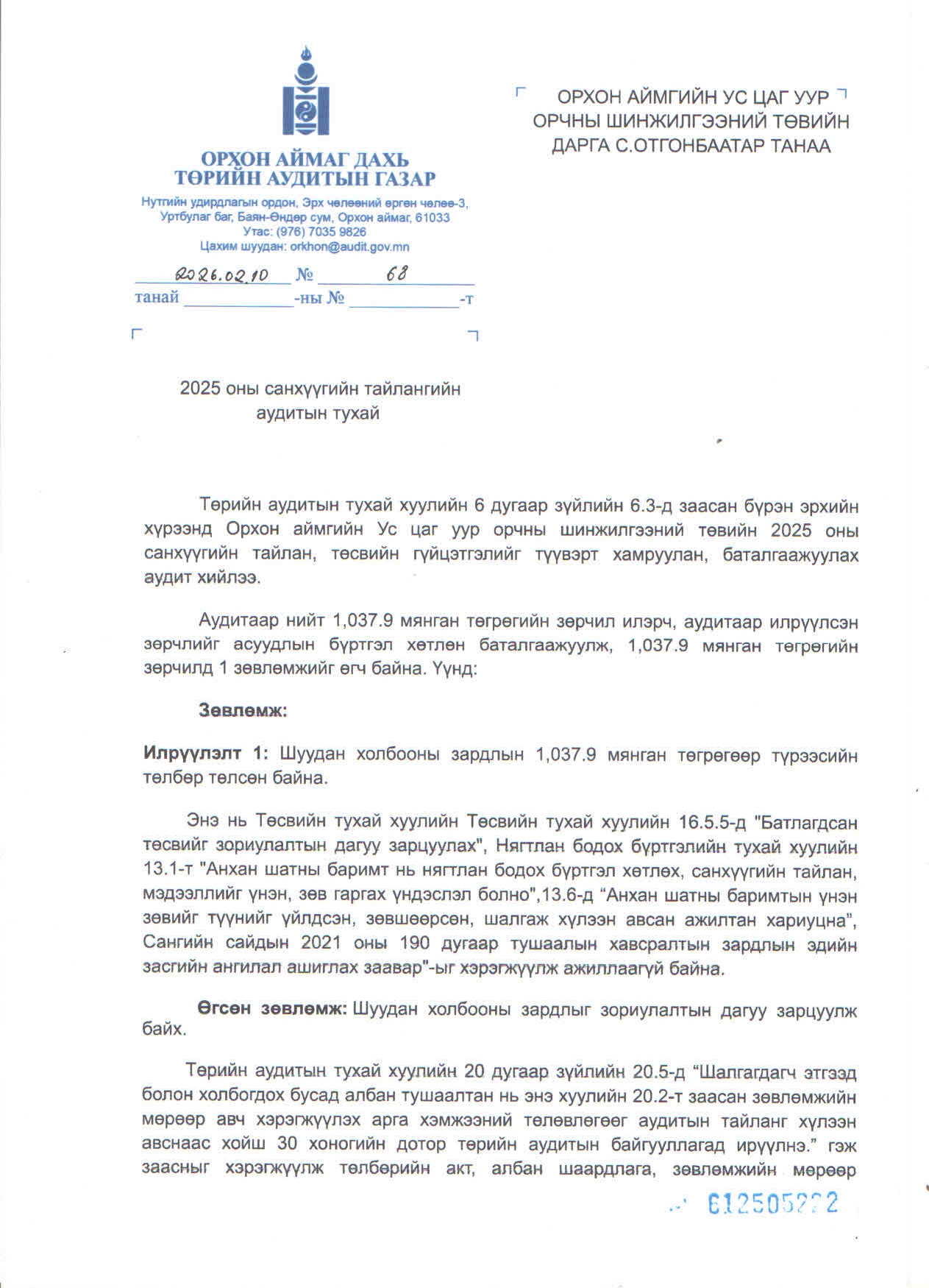 2025 ОНЫ АУДИТЫН ДҮГНЭЛТ