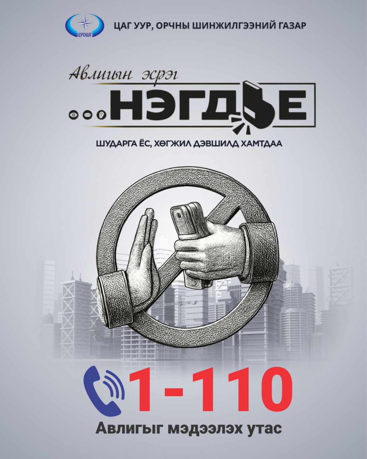 Харилцаа холбооны зохицуулах хорооны 2025 оны 190 дүгээр тогтоолоор Авлигатай тэмцэх газрын гомдол, мэдээлэл хүлээн авах 110 тусгай дугаар нь 1-110 (нэг, нэг зуун арав) дугаар болж өөрчлөгдөн 2026 оны 01 дүгээр сарын 12-ны өдрөөс ажиллаж эхлээд байна.