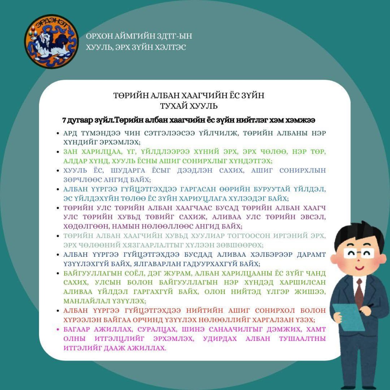 ТӨРИЙН АЛБАНЫ ЁС ЗҮЙН ТУХАЙ ХУУЛЬ