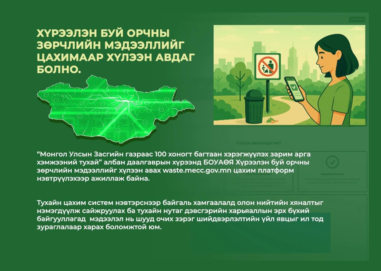 ХҮРЭЭЛЭН БУЙ ОРЧНЫ ЗӨРЧЛИЙН МЭДЭЭЛЛИЙГ ЦАХИМААР ХҮЛЭЭН АВДАГ БОЛНО