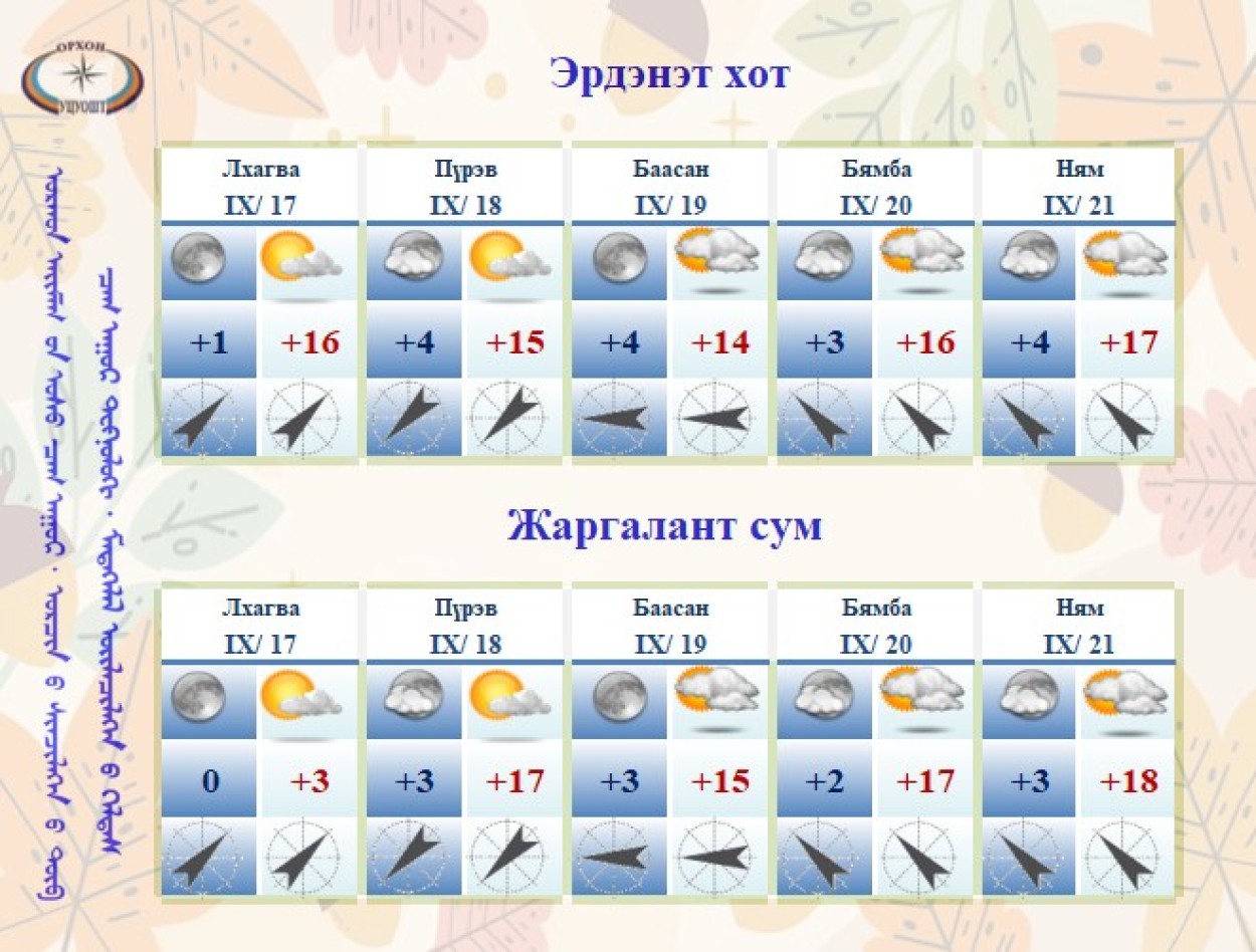 2025 оны 09 сарын 17-оос 09 сарын 22-ыг хүртэлх 5 хоногийн урьдчилсан мэдээ