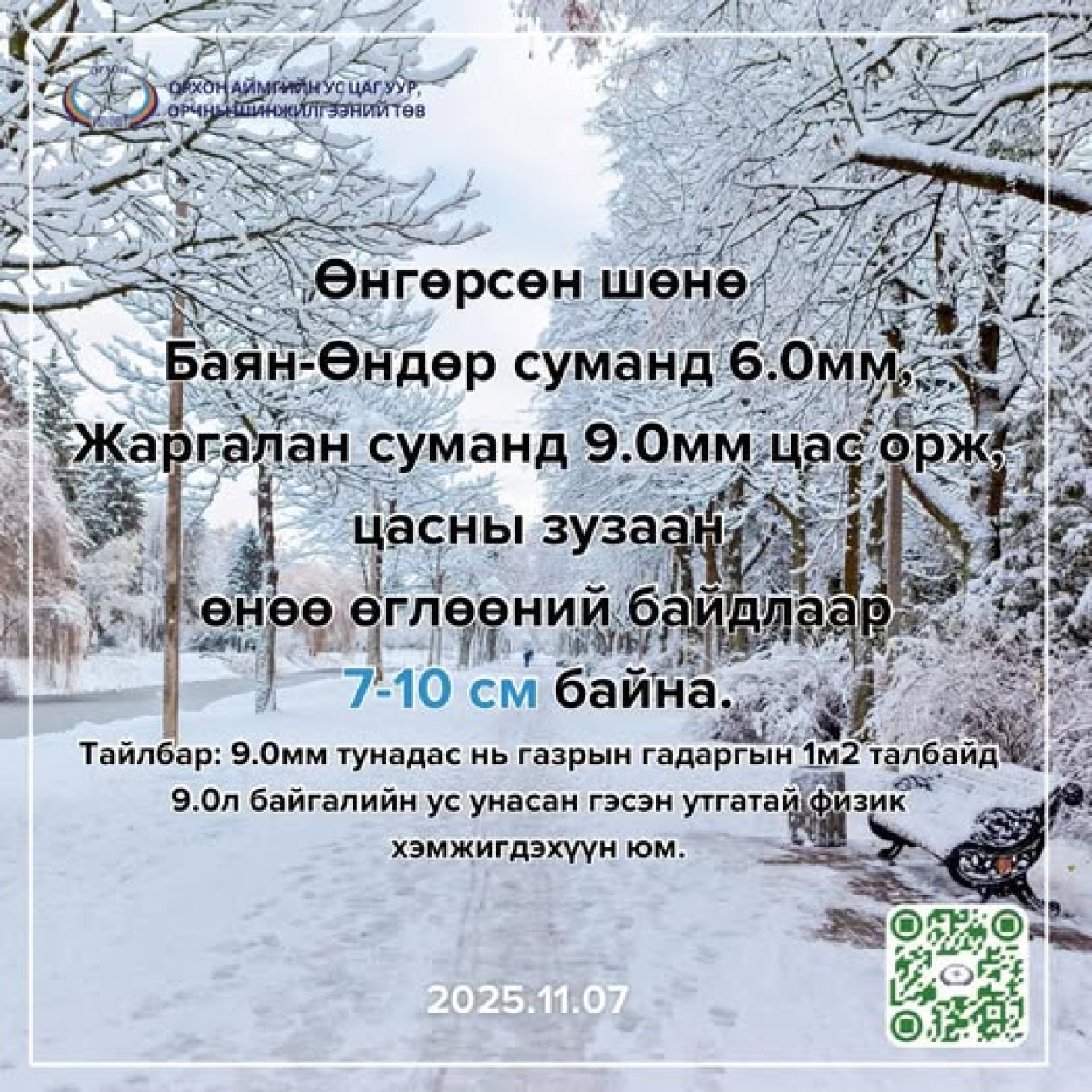 Эрдэнэт хотод 7см, Жаргалант суманд 10см зузаан цас орлоо