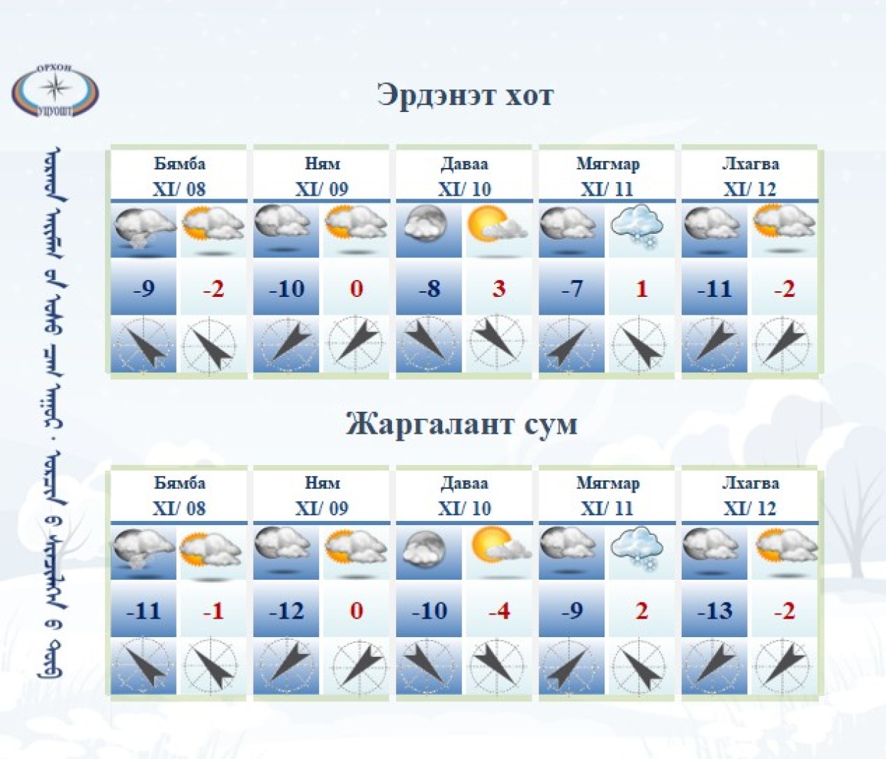 2025 оны 11 сарын 8-аас 11 сарын 13-ыг хүртэлх 5 хоногийн урьдчилсан мэдээ