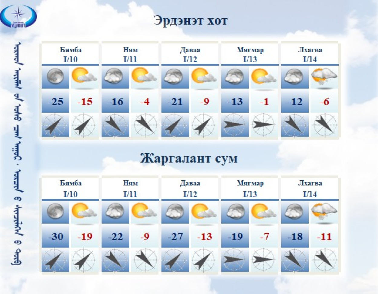 2026 оны 01 сарын 10-аас 01 сарын 15-ыг хүртэлх 5 хоногийн урьдчилсан мэдээ: