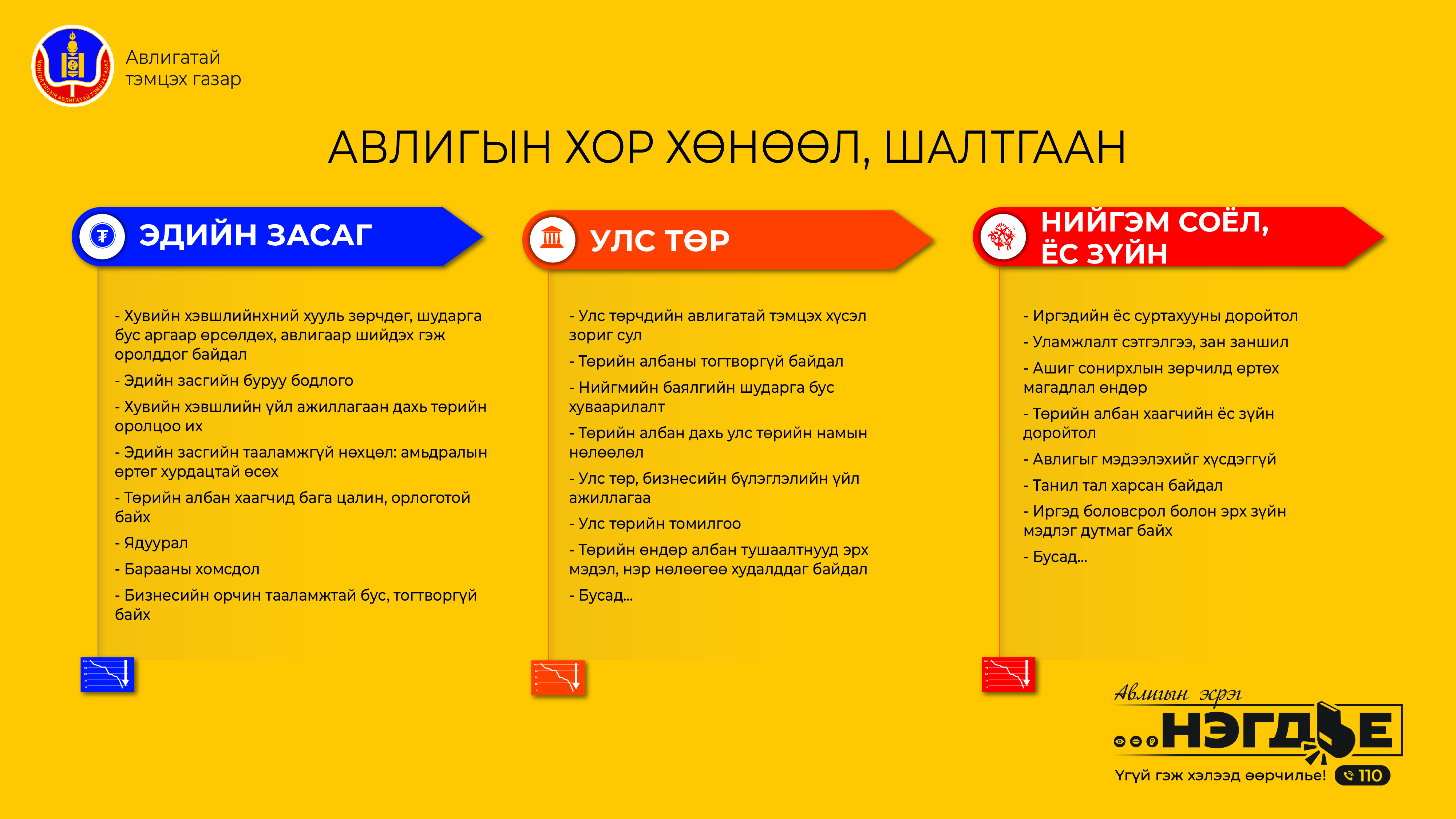 "Авлига" гэж авлигын эсрэг хуульд заасан этгээд албан тушаалын эрх мэдлээ хувийн ашиг хонжоо олоход урвуулан ашиглах, бусдад давуу байдал олгох, иргэн, хуулийн этгээдээс тэрхүү хууль бус давуу байдлыг олж авах үйлдэл, эс үйлдэхүйгээр илрэх аливаа эрх зүйн зөрчлийг ойлгоно.