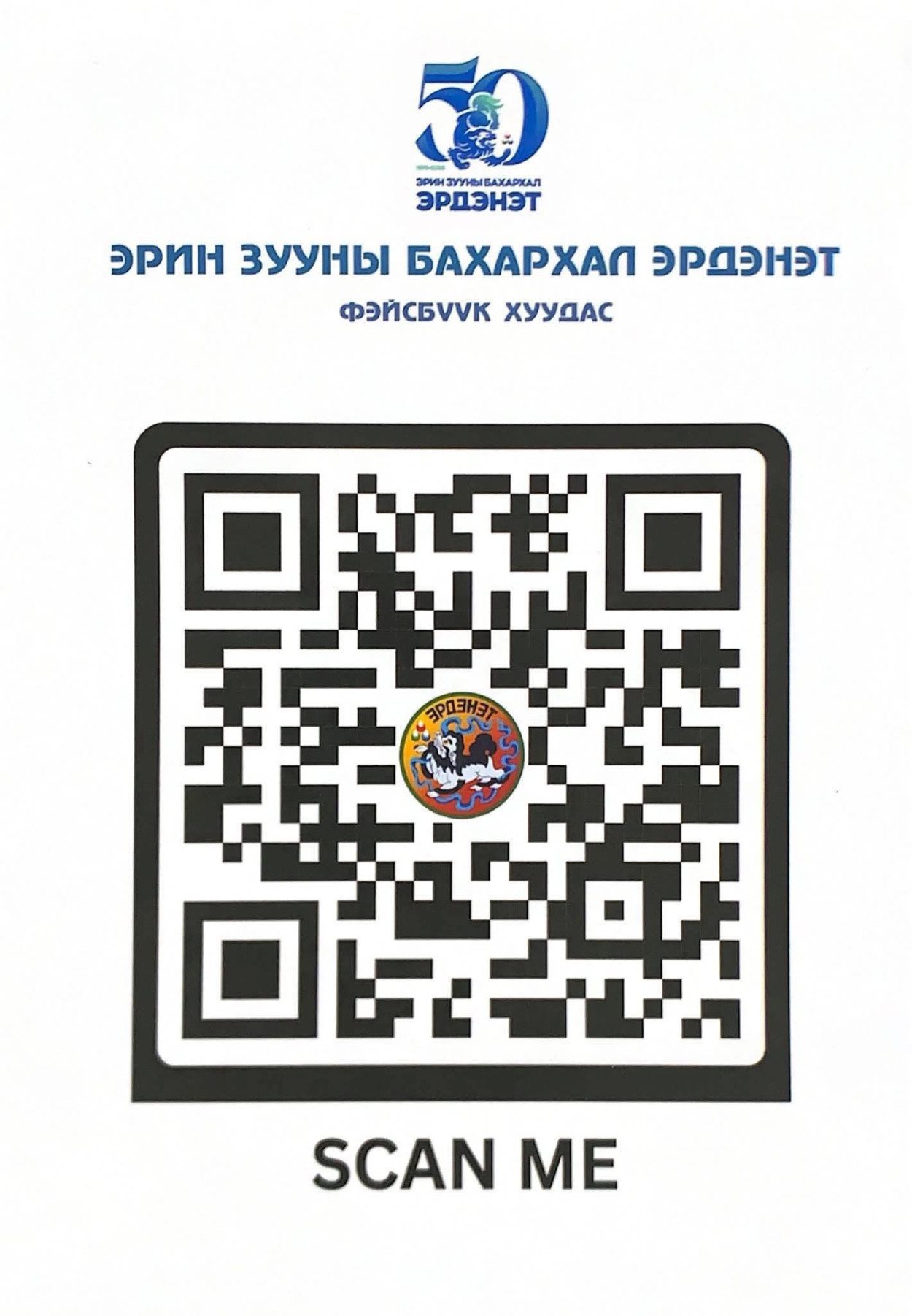 Иргэд та бүхэн доорх кү-ар кодыг уншуулан ЭРИН ЗУУНЫ БАХАРХАЛ ЭРДЭНЭТ пэйж хуудсыг дагаарай. Эрдэнэт хотын 50 жилийн ойг угтан хийж хэрэгжүүлж буй үйл ажиллагааны мэдээ, мэдээллүүд өдөр бүр орж байна. Таалан соёрхоно уу.