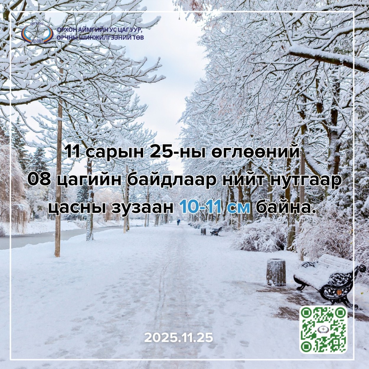2025.11.25-ны 08:00 нийт нутгаар цасны зузаан 10-11см байна