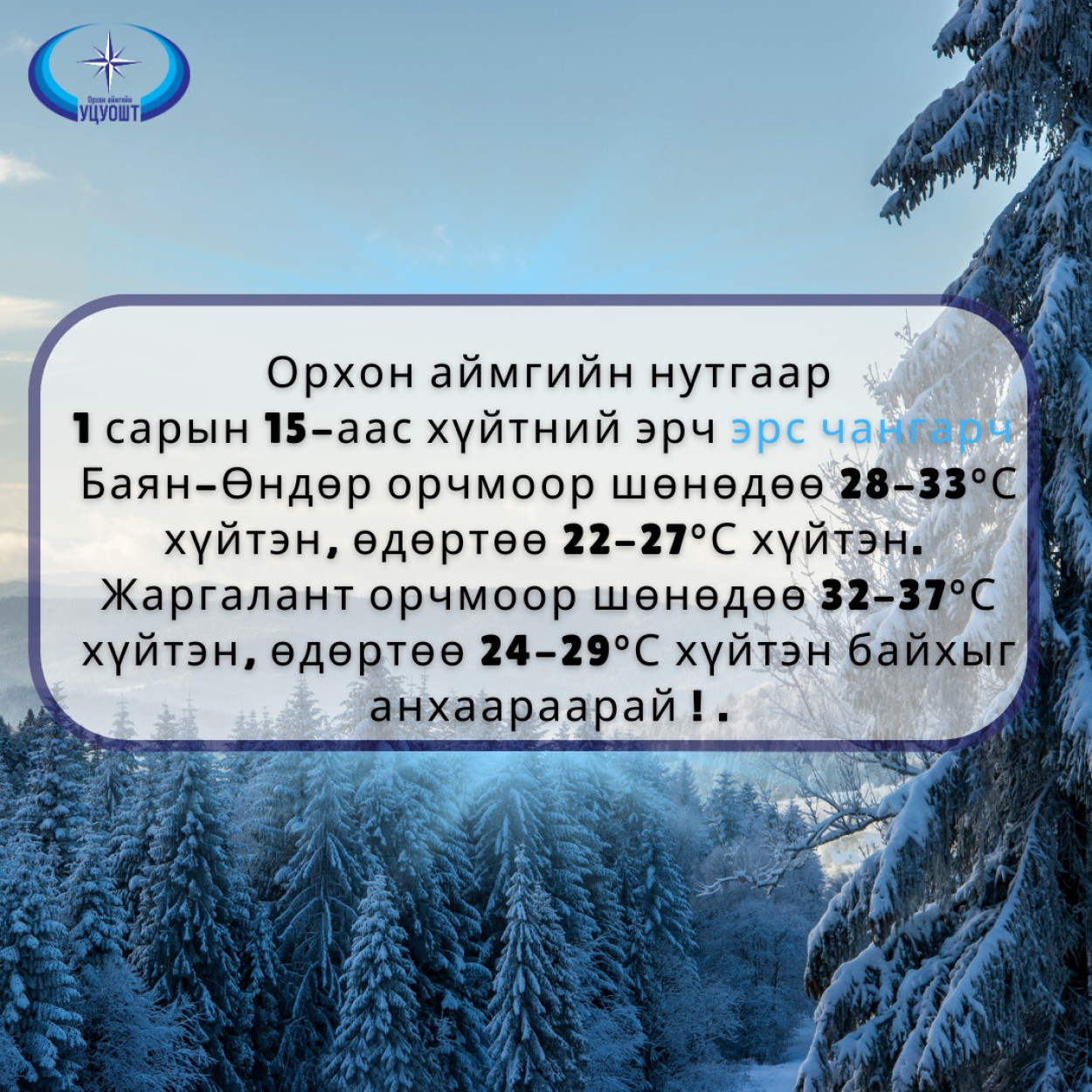 Орхон аймгийн Ус цаг уур