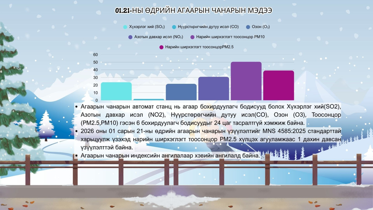 01 сарын 21-ны өдрийн агаарын чанарын мэдээ
