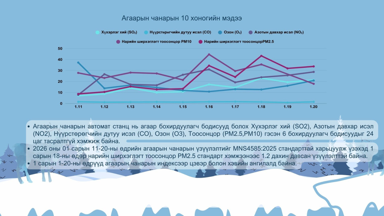Агаарын чанарын 2026.01.11-20 хүртэлх 10 хоногийн мэдээ