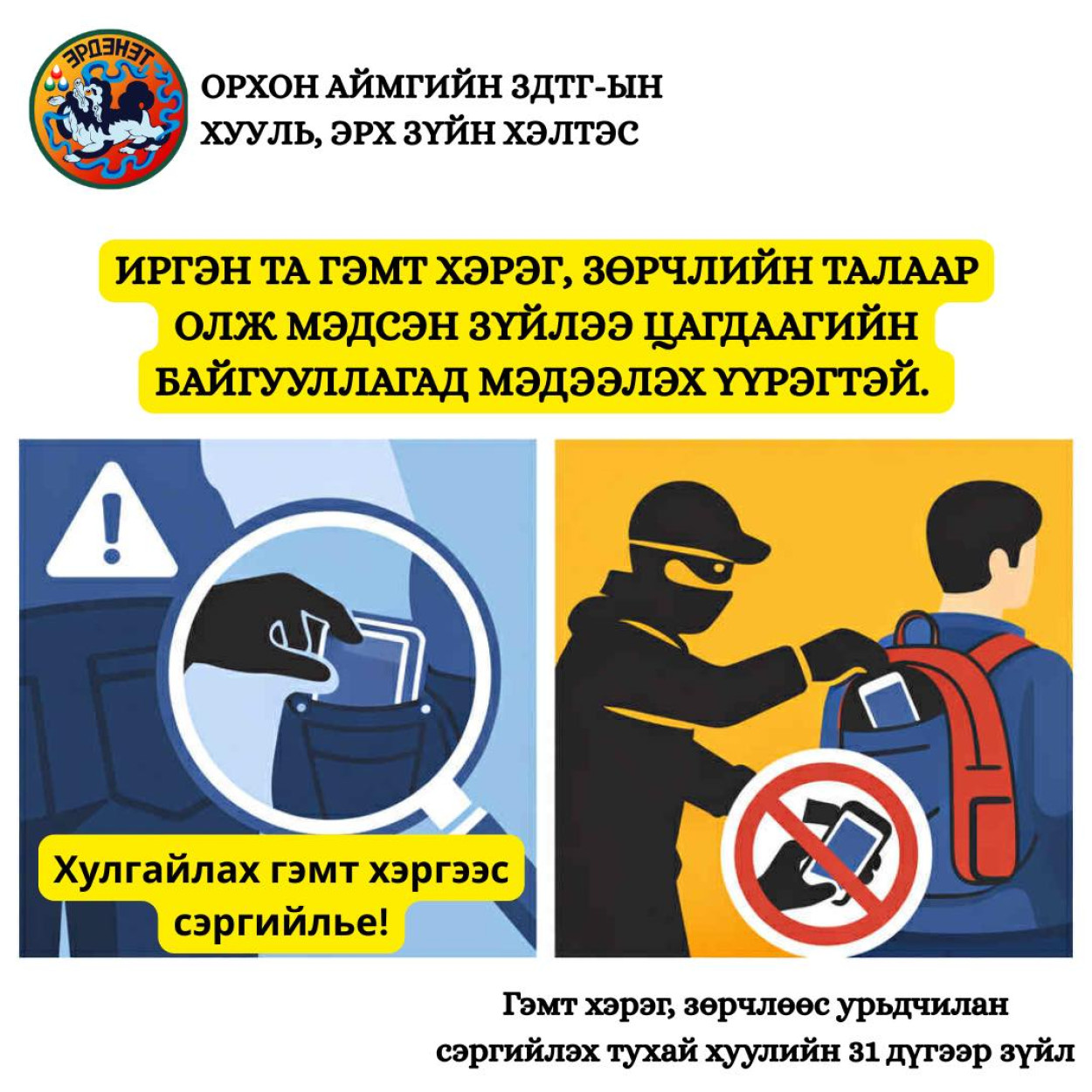 Хулгайн гэмт хэргээс урьдчилан сэргийлье